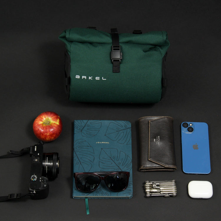 Il est surprenant de voir combien de choses le sac de guidon Burrito peut transporter : un petit livre, un portefeuille, un téléphone portable, des collations, etc.